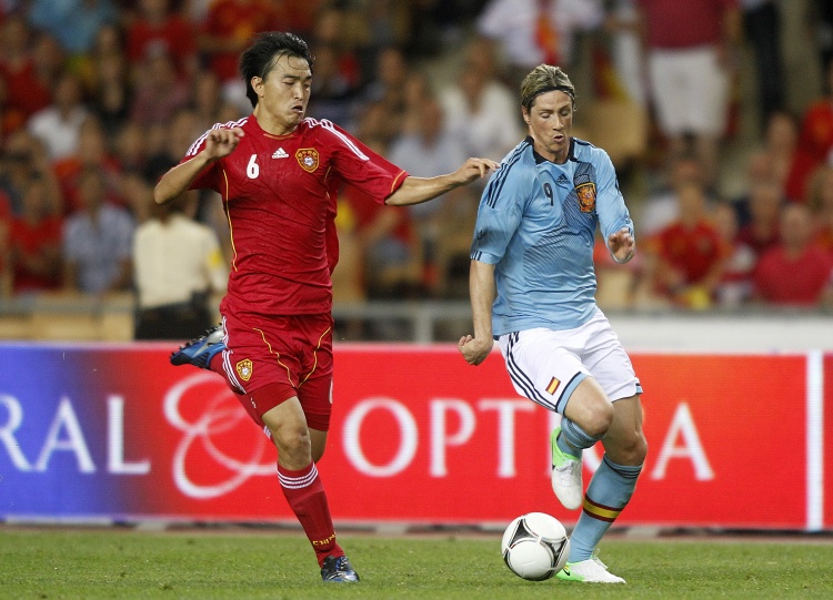 2012年西班牙欧洲杯夺冠,在欧洲杯之前西班牙友谊赛1-0战胜中国,郑智失良机,第84分钟伊涅斯塔助攻大卫·席尔瓦破门。